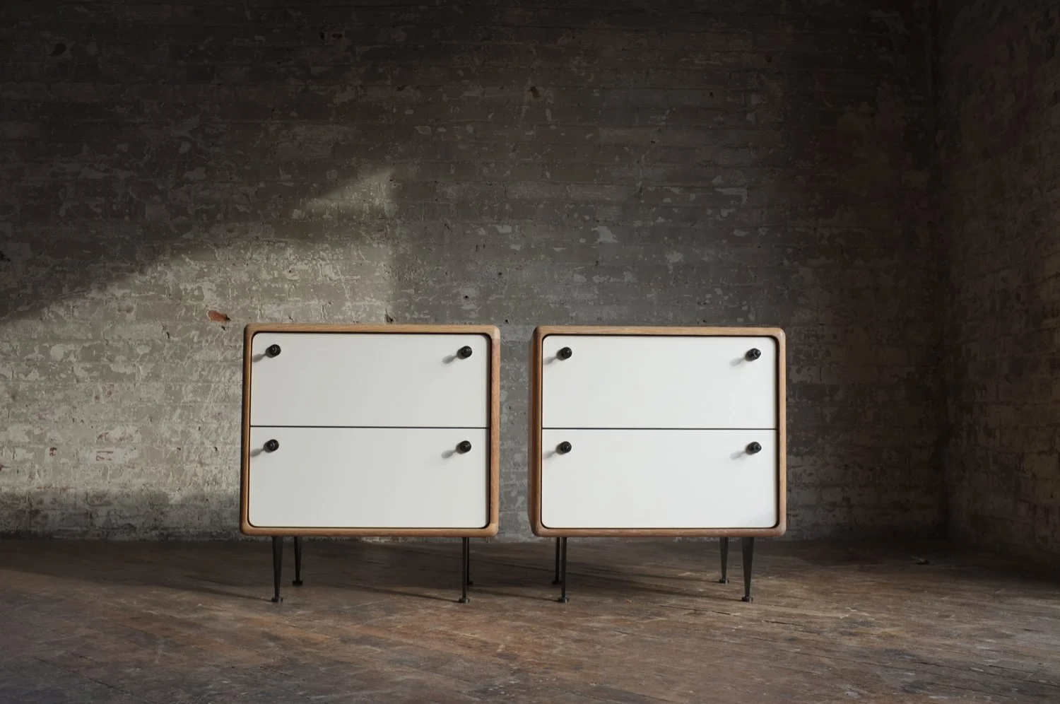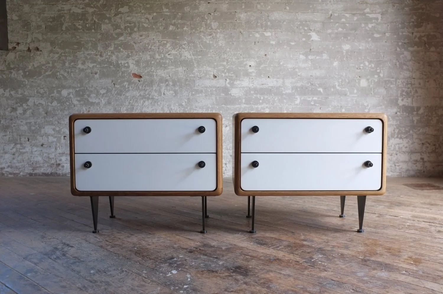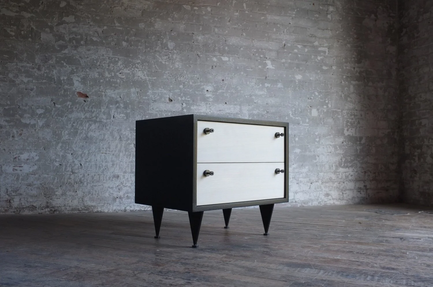 A simple bedside unit with elegant proportions and dovetailed drawers. Adorned with our solid brass and steel hardware the Mohawk line is known for.